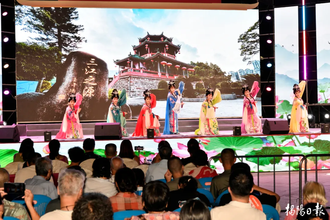 潮劇的婉轉唱腔也在晚會上驚豔亮相。經典劇碼選段登臺,水袖輕拂間,將潮汕民間故事裏的悲歡離合演繹得淋漓盡致。工夫茶更是貫穿晚會始終的「鄉愁符號」。舞臺兩側的茶席上,茶藝師行雲流水地完成「關公巡城」「韓信點兵」 的沖泡工序,醇厚茶香伴著歌聲飄散。晚會間隙,海外僑胞圍坐茶桌,一杯工夫茶下肚,「還是家鄉的味道最正」 的感慨,道出了非遺背後最樸素的鄉愁。此外,潮陽剪紙、嵌瓷、貴嶼雙忠信俗等非遺項目也以創意形式呈現,剪紙藝人現場剪出「月圓人團圓」 的圖案,嵌瓷作品裝點著舞臺背景,讓觀眾在視聽盛宴中,沉浸式感受潮汕非遺的獨特魅力。