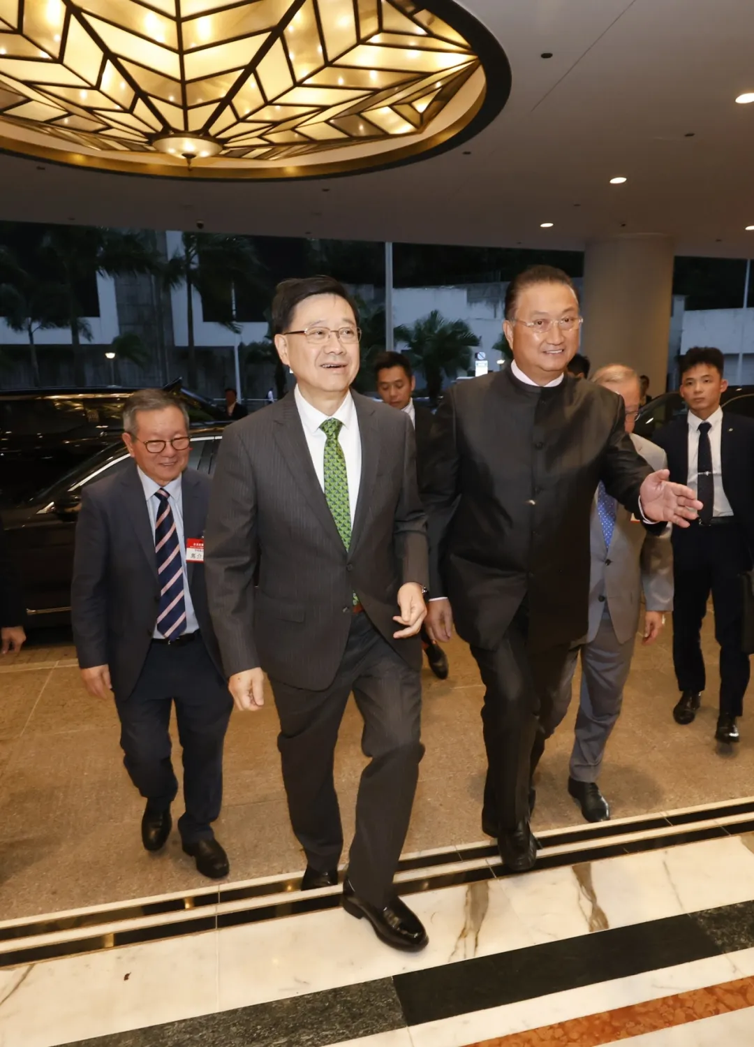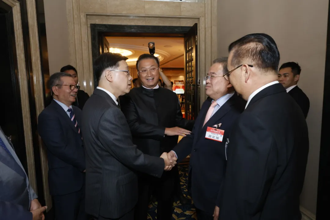 行政長官李家超致辭時表示,潮籍鄉親以勤奮拼搏的精神著稱,是推動香港社會繁榮與經濟發展的重要力量。多年來,潮屬各界堅定支持並積極配合特區政府施政,推動社會公益,「我肯定在座『自己人』(潮州話)的貢獻」。新一份《施政報告》,為香港主動對接國家發展戰略、實現突破新局面作出了策略部署。在「一國兩制」下,香港擁有「引進來、走出去」的獨特優勢。潮籍社群遍布全球,尤其在東南亞地區根基深厚,擁有穩固的商業網絡,可以在「出海」過程中發揮積極作用。「我鼓勵大家積極用好『引進來、走出去』策略,將你們的深厚人脈與商業智慧,轉化為香港與內地企業攜手進軍海外市場的具體優勢。潮籍鄉親勤奮拼搏、自強不息,必然可以發揮更大力量,為香港的發展和繁榮,貢獻更大的拳頭力量。」