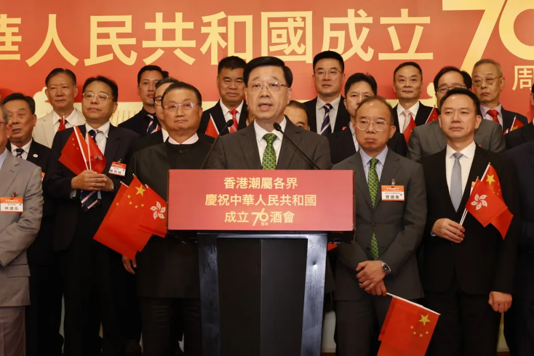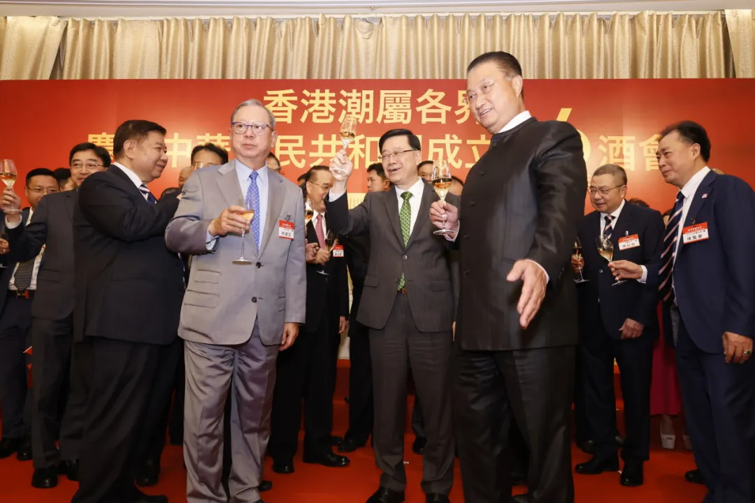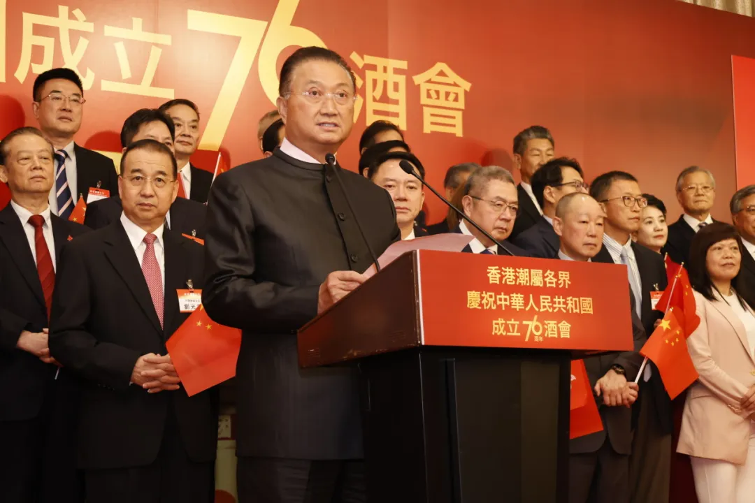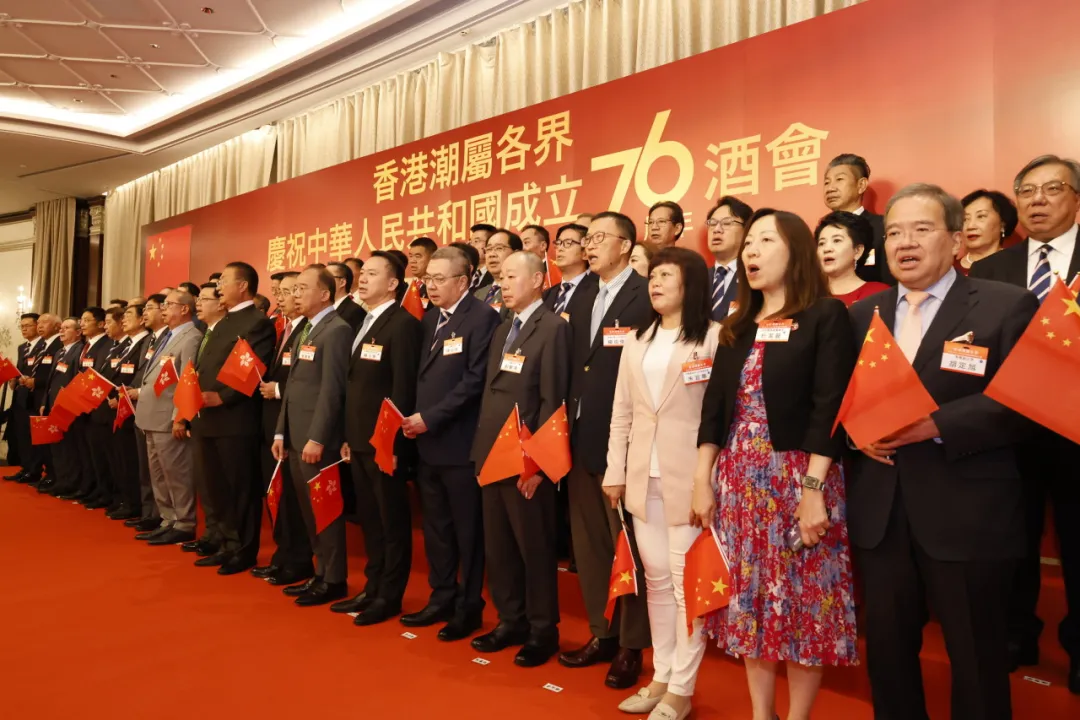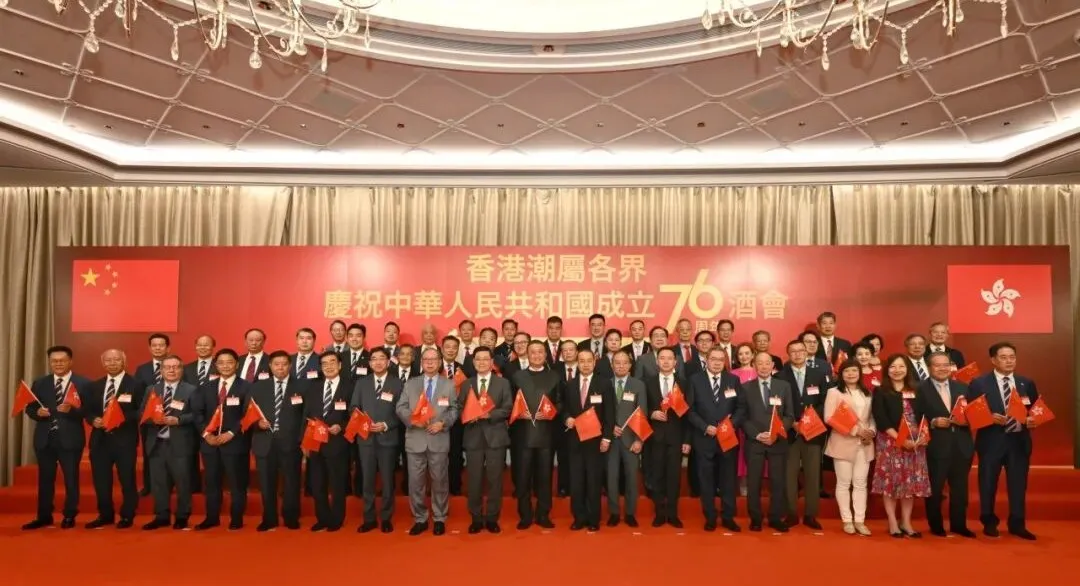 香港潮屬各界慶祝中華人民共和國成立七十六周年國慶酒會,2025年9月25日假港島金鐘香格里拉酒店隆重舉行。行政長官李家超,中聯辦副主任劉光源,政制及內地事務局局長曾國衛,中聯辦社團聯絡部部長蘇玉軍等應邀出席主禮。