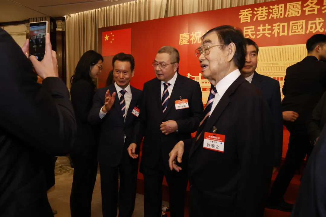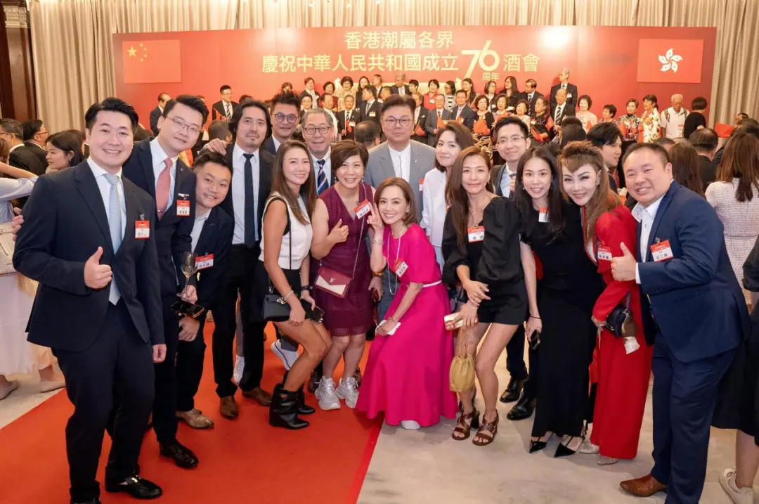 出席酒會的有中央政府駐港機構領導、香港特區政府官員、立法會議員、各社團首長、大學高層、傳媒機構及其他各界知名人士,以及香港潮屬各界慶祝國慶籌委會成員近五百人,包括:楊成偉、郭長勇,朱宜華,杜潔麗,陳清霞、張宇人、林健鋒、陳克勤、謝偉俊、馬逢國、葛珮帆、吳永嘉、邵家輝、容海恩、陳振英、江玉歡、李浩然、李梓敬、吳秋北、周文港、林琳、梁子穎、梁毓偉、陳勇、陳月明、陳仲尼、陳沛良、陳家佩、陳曼琪、陸瀚民、管浩鳴、黃國、鄧飛、鄧家彪、黎棟國、顏汶羽、簡慧敏、譚岳衡、嚴剛、郭玲麗、張國義、袁建、蘇藝、文灼非。