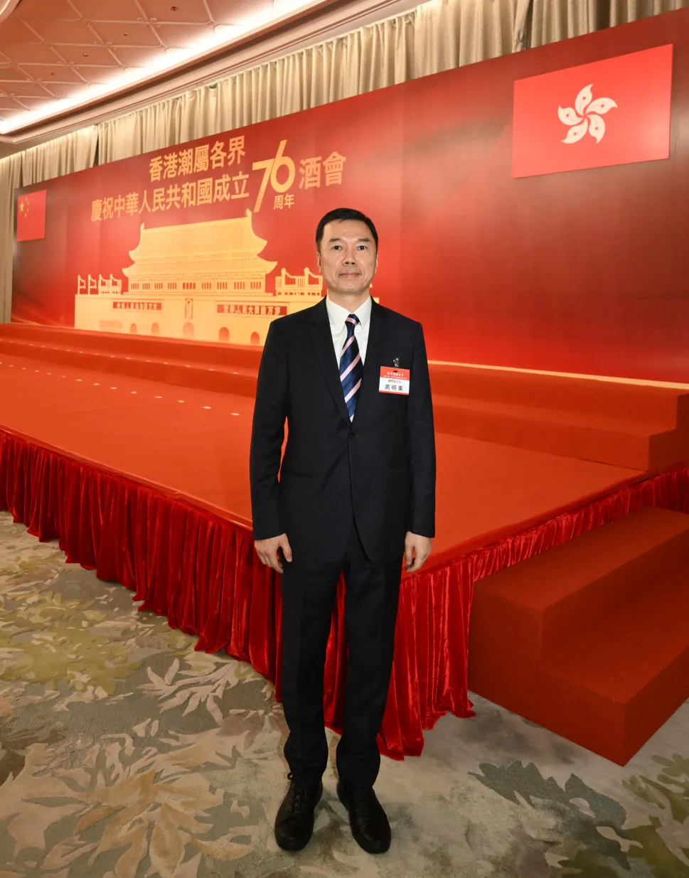 陳振彬主席致辭,他表示,76年來,國家經濟實力、國防科技、體育文化及人民生活水平都發生翻天覆地的變化。不久前北京舉行的紀念中國人民抗日戰爭暨世界反法西斯戰爭勝利80周年紀念大會和閱兵儀式,展示過去十年國家軍事體制改革的成果,有助維護國家的發展。即將舉行的第十五屆全國運動會,由廣東省、香港特別行政區和澳門特別行政區聯合主辦。香港首次參與承辦這項全國體育盛事,意義重大,是香港融入國家發展大局的重要契機,豐富「一國兩制」實踐的重要機會。世界知識產權組織公布了《2025年全球創新指數》百強創新集群,「深圳—香港—廣州」集群排名全球第一,顯示特區政府加強與大灣區的合作,全力推動香港發展成為國際創科中心的堅定信心。他續稱,行政長官李家超剛發表了2025年施政報告,全力「拼經濟謀發展惠民生」、加快邁向「由治及興」的進程表。潮屬各界一百多萬鄉親團結前行,同開新篇。我們堅決支持行政長官的施政報告,帶領46個屬會及超過16萬會員,以「香港潮州節」和「盂蘭文化節」等大型品牌活動,做好促進社會和諧的工作,主動對接國家發展戰略,以香港所長貢獻國家所需。