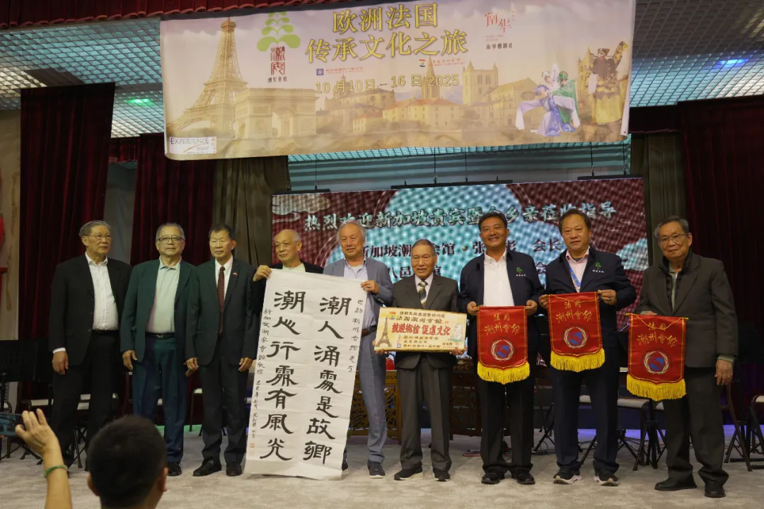 法國潮州會館於2025年10月12日接待了從新加坡遠道而來的的潮安會館、潮州八邑會館及南華潮劇社代表團,此次活動以「文化交流·傳承鄉情」為主題,不僅展示了潮汕傳統藝術的魅力,更讓海外潮人共同感受了跨越1.07萬公里的深情聯結。中国驻法使馆领侨处万磊参赞、会馆成员及家属等百余人出席。