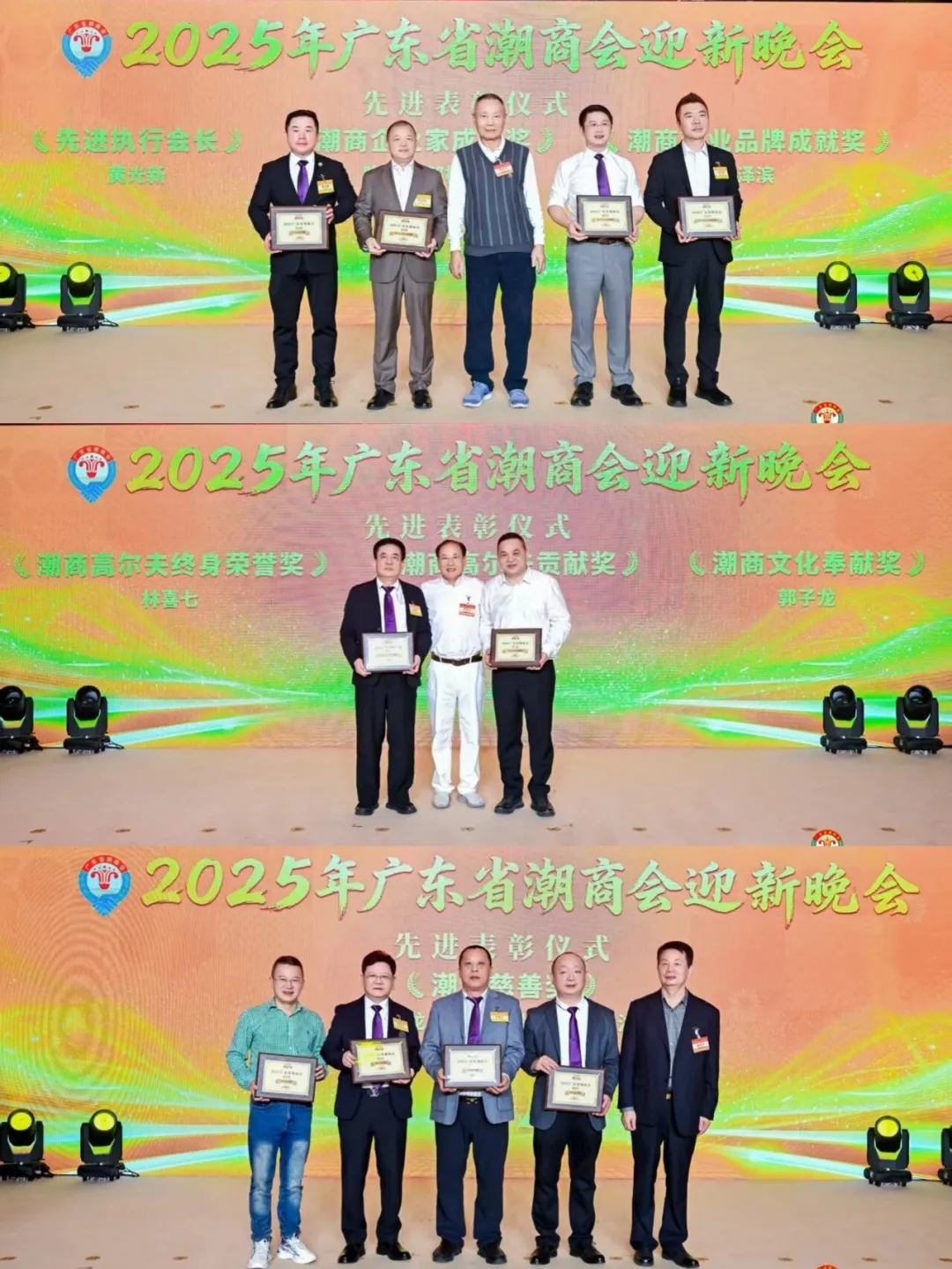 活動中還舉行了表彰儀式和迎新晚會。其中,表彰項目包括先進執行會長、潮商企業家成就獎、潮商商業品牌成就獎、潮商高爾夫終身榮譽獎、潮商高爾夫貢獻獎、潮商文化奉獻獎、潮商慈善獎、先進常務副會長、優秀個人獎、積極活動獎、專業成就獎、先進副會長、先進常務理事、先進理事、先進會員、優秀團體獎、龍騰虎躍全勤獎、體育貢獻獎等。