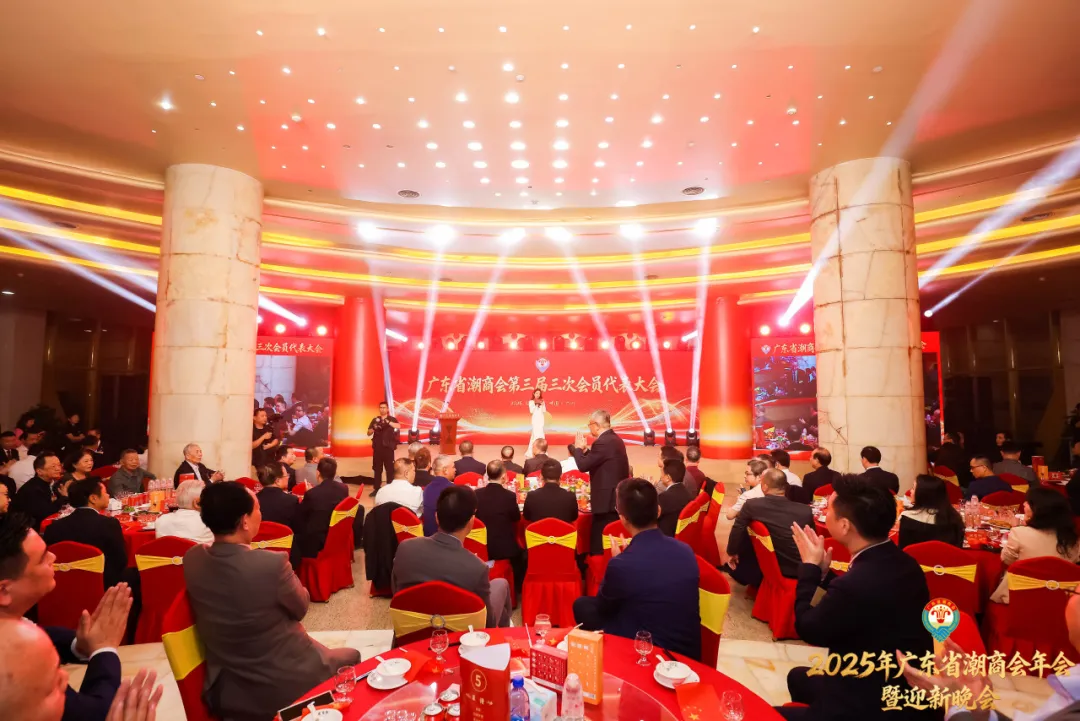 12月20日,2025年廣東省潮商會年會暨迎新晚會在廣州圓大廈隆重舉行。出席年會活動的領導和嘉賓有:廣東省潮商會高級顧問、廣東省委原副書記蔡東士,廣東省潮商會高級顧問、廣東省人大常委會原副主任黃偉鴻,廣東省潮商會高級顧問羅林竹,廣東省政府原副秘書長劉曉捷,廣東省社會組織總會會長王長勝,華南理工大學工商管理學院黨委書記周勤,廣東省潮人海外聯誼會會長李永喜,廣東省社會組織管理局原副局長徐祖平,廣東省民政廳社會組織登記處一級調研員龍仕運,廣東省民政廳社會事務處原一級調研員李志華,廣東省潮商會名譽會長周修俠、範思斌、紀力清、張欽洲、李廷家、陳海燕、林木治、周少川、馬灶雄,廣東省潮商會海外顧問莊海文,潮州駐廣州辦事處主任張華楨,汕頭駐廣州辦事處副主任陳曉檳,汕尾駐廣州辦事處副主任田得宏,揭陽駐廣州辦事處科長黎惠波,同時還有廣東省潮人海外聯誼會常務副會長錢宏林、黃良民,廣東省黃金協會會長甄偉鋼,廣東省普寧商會執行會長何榮堅,廣東省澄海商會常務副會長蔡漢有,廣東省惠來商會常務副會長林欽喜,廣東省饒平商會常務副會長黃銳釗以及廣東省潮人海外聯誼會、廣東省社會組織總會、清華經管EMBA廣東校友會、美國紐約潮青會、廣東省潮州商會、廣東省揭陽商會、廣東省揭西商會、廣州市增城區潮青企業交流促進會、廣州市增城區潮聯公益協會等兄弟社團和友好單位代表。