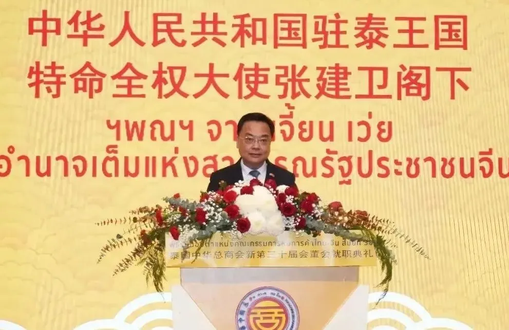 中華人民共和國駐泰王國特命全權大使張建衛在就職典禮上致賀詞。他表示,泰國中華總商會作為泰華社會主要的龍頭社團,有著光榮傳統和輝煌歷史,樹立了泰華社團的典範,在助力泰國經濟發展和社會公益事業、促進中泰友好和民心相通等方面做出了重要貢獻。張建衛大使說,中泰建交50周年是兩國友誼繼往開來的新起點,希望在林楚欽主席的帶領下,泰國中華總商會繼續為中泰民眾謀福祉,為中泰命運共同體建設做貢獻,為中泰友誼萬古長青添光彩。