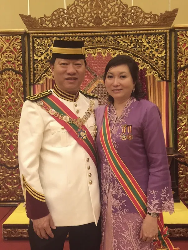 2015年印尼巨港蘇丹殿下封賜吳木興(左一)拿督斯里勳銜