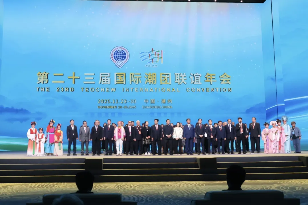 2025年11月30日上午,在第二十三屆國際潮團聯誼年會閉幕式上,會旗正式交接至新加坡潮州八邑會館會長拿督斯里F吳木興博士BBM(L)手中,全場見證了這一歷史性時刻—— 新加坡潮州八邑會館正式成為第二十四屆國際潮團聯誼年會的主辦方,國際潮團聯誼年會邁入「新加坡時間」。接過這面承載使命與期待的旗幟,吳木興也以國際潮團總會主席的新身份,向全球潮人許下了辦好2027年盛會的莊嚴承諾。