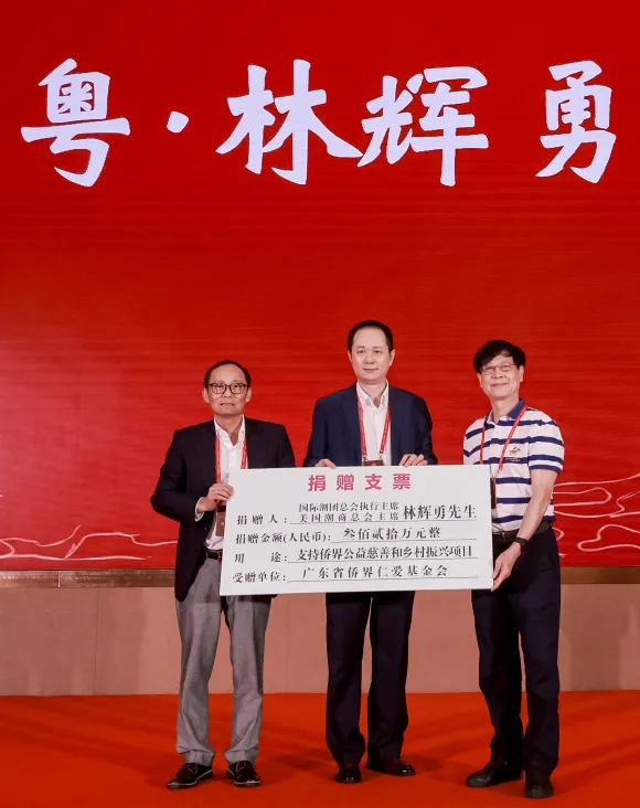 僑宴上舉行了「僑愛南粵」捐贈儀式。國際潮團總會執行主席、美國潮商總會主席林輝勇先生向廣東省僑界仁愛基金會捐贈320萬元,支持僑界公益慈善事業和鄉村振興工作。