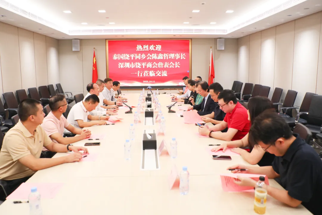 泰國饒平同鄉會理事長陳鑫哲、深圳市饒平商會會長詹表一行於2025年10月11日到訪國際潮團總會深圳秘書處、國際潮青聯合會和深圳市潮汕青年商會,受到國際潮青聯合會名譽會長、深圳潮青商會榮譽會長、海岸集團董事局主席李茂水等的熱情接待。雙方在海岸大廈座談,就潮團建設、潮青事業發展等話題進行了熱烈的交流。