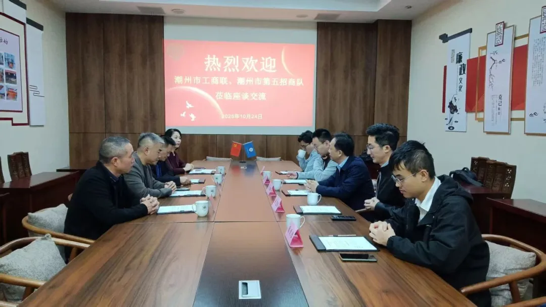 為進一步加強潮州與蘇州兩地經濟合作,推動產業資源對接,10月24日上午,潮州市工商聯副主席、市第五招商隊領隊李偉鵬,潮州市商務局三級主任科員、市第五招商隊隊員陳權,潮州市招商中心工作人員(博士)、市第五招商隊聯絡員朱寶彰,共青團饒平縣委員會副書記、縣駐杭州招商隊領隊魏釧,饒平縣汫洲鎮人民政府一級科員、縣駐杭州招商隊隊員康悅佳一行到訪蘇州潮汕商會開展座談交流,受到蘇州潮汕商會副會長呂宏海,黃錦彪、楊建輝及秘書長薛靜如的熱情接待。雙方圍繞產業合作、招商引資及商會建設等主題進行深入交流,共敘鄉情,共話發展。