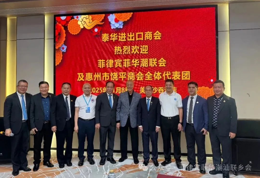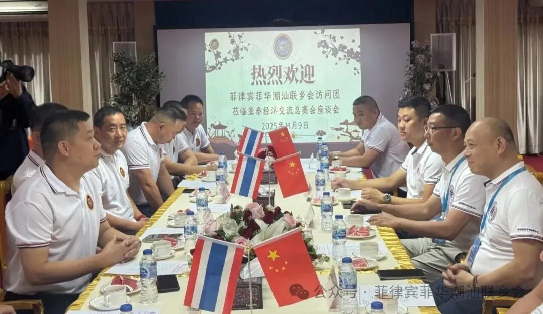 菲華潮汕聯鄉會在王銳會長的帶領下,赴泰國展開了一場意義非凡的友好訪問之旅。訪問團先後拜訪了泰國華人青年商會、泰國潮安會館、泰國饒平會館、泰華進出口總商會、亞泰經濟交流總會、泰國潮州會館、泰國中華總商會等七大知名僑團,受到各僑團領導熱情接待,全程鄉音縈繞,暖意融融。 泰國作為潮汕華僑聚居的核心地區,此次訪問宛如一場跨越國界的鄉情之約。訪問團每到一處,均與受訪僑團以潮汕鄉音互致問候,一同細數兩地僑胞血脈相連的淵源,共同回憶拼搏歲月裏相互扶持的情誼,濃濃的鄉情在交流中不斷升溫。