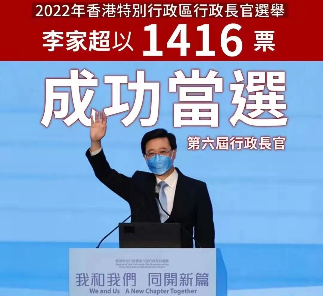 祝賀李家超先生以1416票成功當選香港特區第六任行政長官人選