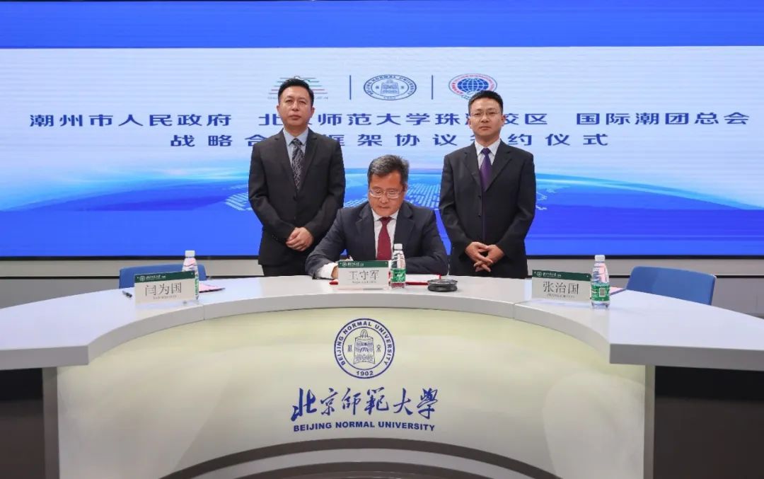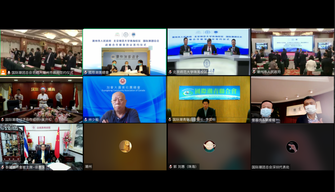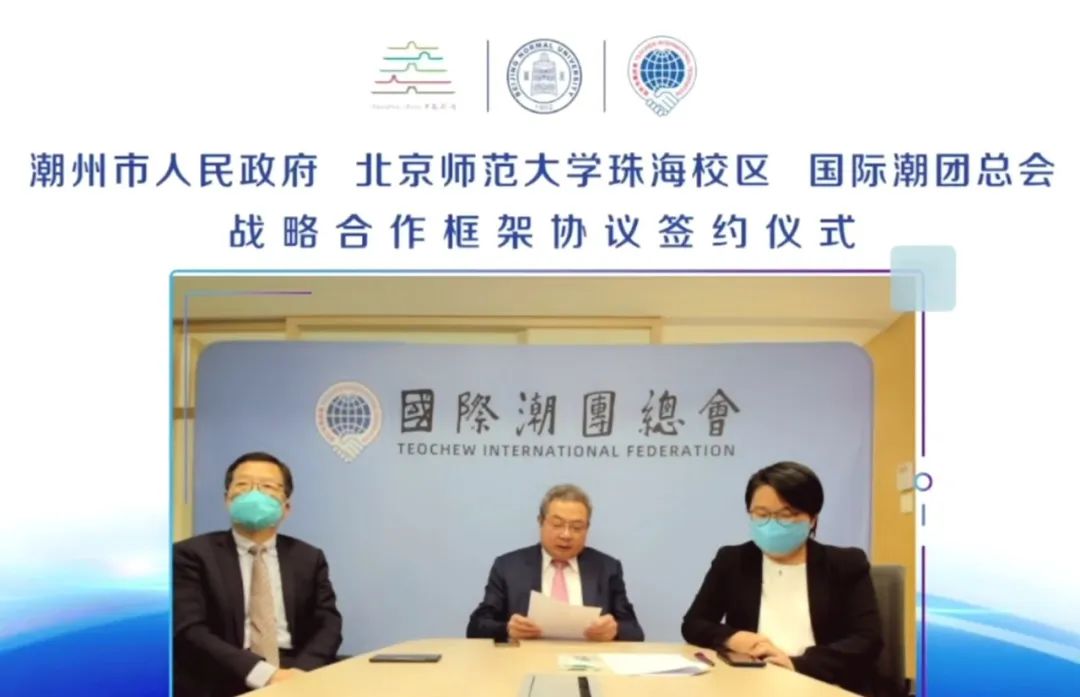 國際潮團總會與潮州市人民政府 北京師範大學珠海校區簽訂戰略合作框架協議 6月22日,國際潮團總會與潮州市人民政府、北京師範大學珠海校區簽訂戰略合作框架協議,採取線上線下同步遠程簽約方式進行。根據協議,三方將在國際化水平整體提升、基礎教育水平提升、教師繼續教育及學歷提升、聯合培養人才、開展校際合作交流、潮文化研究、智庫諮詢和智力成果轉化合作等重點領域開展合作,真誠建立戰略合作夥伴關係,實現三方資源整合,優勢互補,共同發展,共榮共贏。