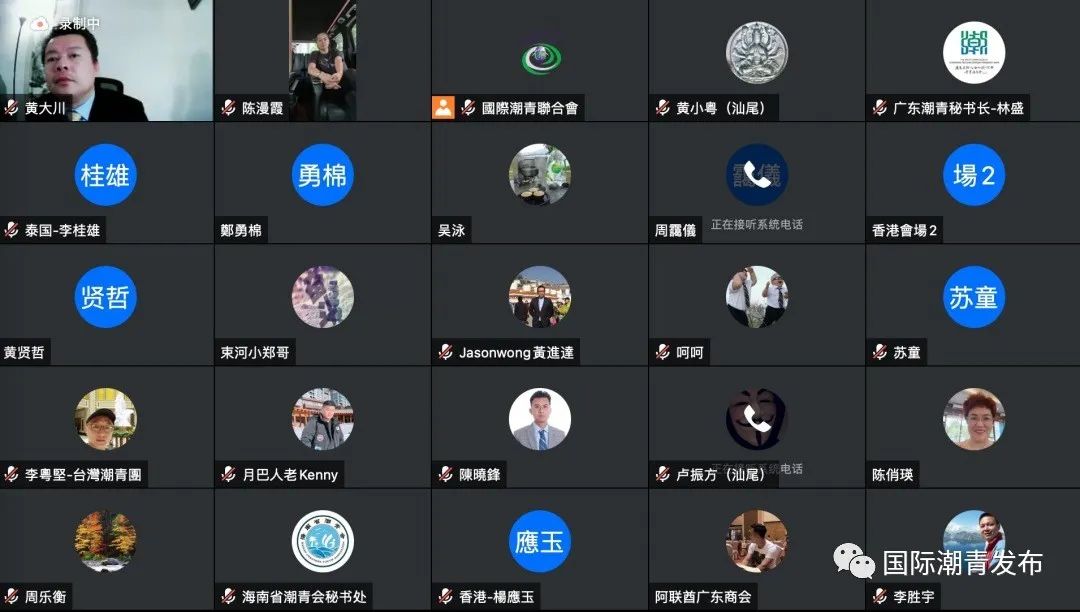 會議現場氣氛活躍,線上線下互動頻繁,永遠會長陳幼南、趙利生、李桂雄、李岸生、陳才雄、胡劍江、郭豐海,執行會長張俊勇、黃德安,常務副會長陳國雄、陳君堯、李嘉淳、陳誠傑,副會長黃大衛、周建軒、章曼琪(秘書長)、朱春雄、馬志文、趙健瑋、李紅梅,常務會董黃大川、陳家桂、會董鄭楚成,副秘書長李大傑等紛紛發言,既為國際潮青聯合會的發展提出了可行性建議,也向祖國同胞、家鄉父老鄉親以及會董會全體成員送上國慶祝福!