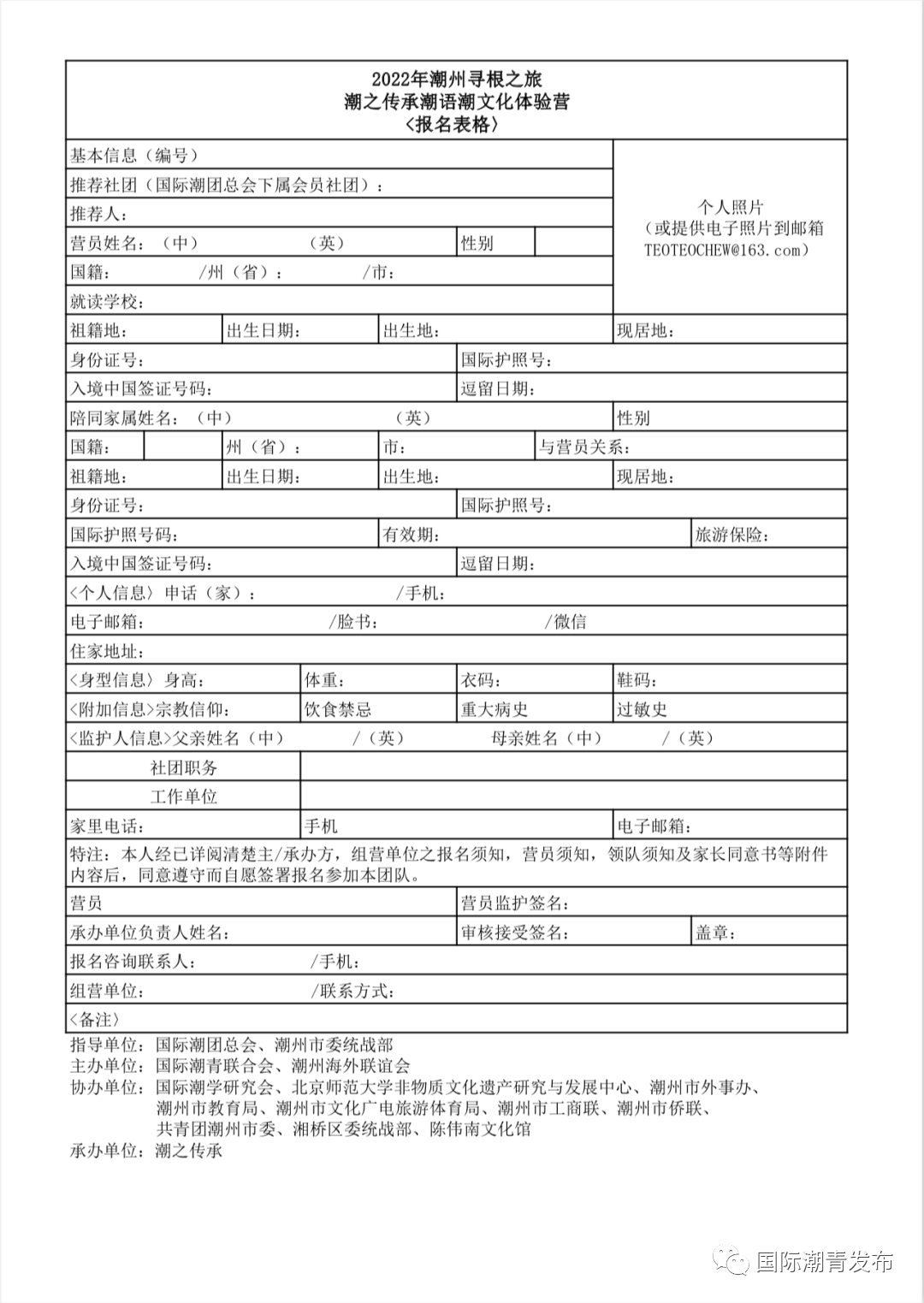 2.發送「申請報名表」至於郵箱TEOTEOCHEW@163.com領取報名資料3. 與國際潮青秘書處聯
