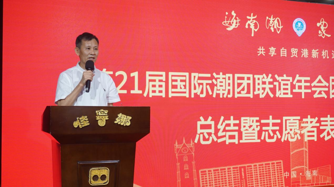 2022年7月22日下午,第21屆國際潮團聯誼年會團長暨秘書長會議總結及志願者表彰大會在海口市隆重召開,第21屆年會籌委會常務理事以上領導、高級顧問、名譽主席、全體志願者及秘書處工作人員參加本次會議。