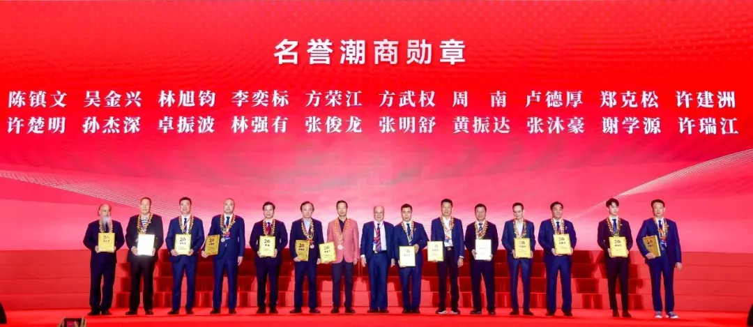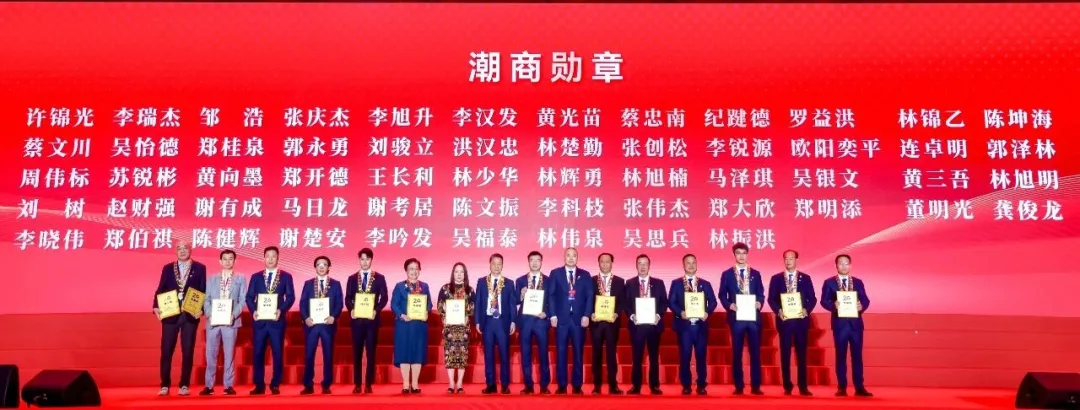 為表彰對商會發展作出卓越貢獻的成員,大會舉行貢獻勳章及獎章頒獎儀式,設立了「特級潮商勳章」「榮譽潮商勳章」「名譽潮商勳章」「潮商勳章」「一級功勳獎」「功勳獎」,致敬功勳人物的奉獻與擔當,凝聚潮商團結奮進的精神力量。