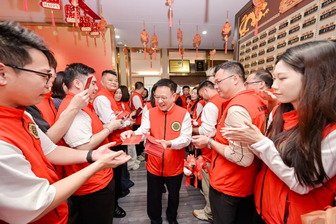 團拜會上,喜慶氛圍持續升溫。激動人心的新春紅包派發環節將現場氣氛推向高潮。商會黨支部書記、會長林祖武,執行會長吳朝育,監事長曾吉添,名譽會長兼秘書長徐家平,名譽會長林祖浩,輪值會長周俊、張偉榮、高忠礦、劉文進、劉文勝,常務副會長張文彬等領導向在場會員鄉賢派發賀歲紅包,送上財源廣進、事業興旺、闔家安康的新春祝福,寓意商會與全體鄉賢同仁在馬年策馬揚鞭、聚力共贏、大展宏圖。