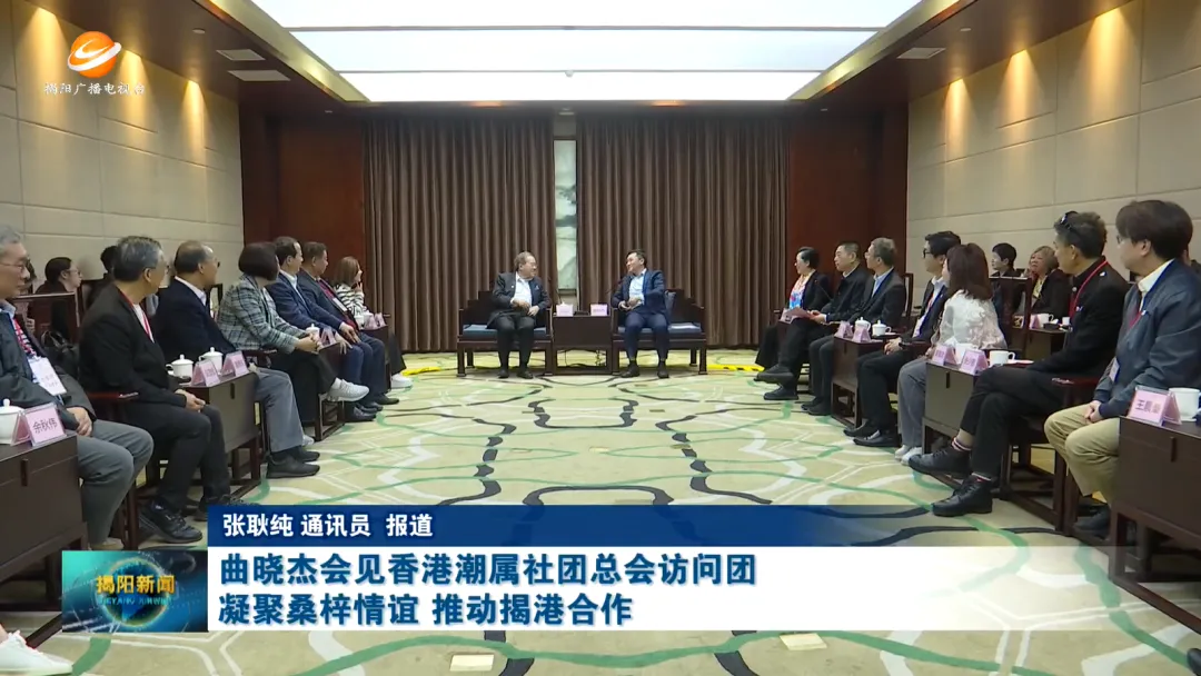 曲曉傑代表市委、市政府對訪問團的到訪表示熱烈歡迎,對香港潮屬社團總會長期以來積極支持揭陽經濟社會發展、致力推動揭港合作表示感謝,並簡要介紹了近年來揭陽經濟社會發展取得的新成就、呈現的新氣象。他說,香港潮屬社團總會是香港具有重要影響力的愛國愛港社團,長期以來團結香港潮屬社團和各界人士,為維護香港繁榮穩定、促進香港與內地交流合作作出了積極貢獻。揭陽與香港地緣相近、人緣相親,經貿往來密切,合作空間廣闊。希望香港潮屬社團總會繼續發揮橋樑紐帶作用,進一步凝聚鄉情、彙聚力量,組織更多鄉親和企業家回鄉考察交流,投資興業,特別是在科技創新、文化旅遊、青年交流等方面深化務實合作,共用揭陽發展新機遇。揭陽將全力營造市場化、法治化、國際化一流營商環境,為香港企業和鄉親在揭陽發展提供更優服務、創造更好條件。