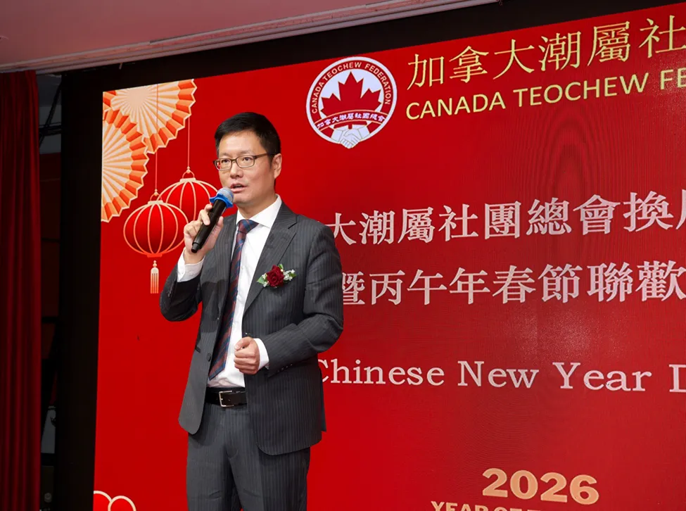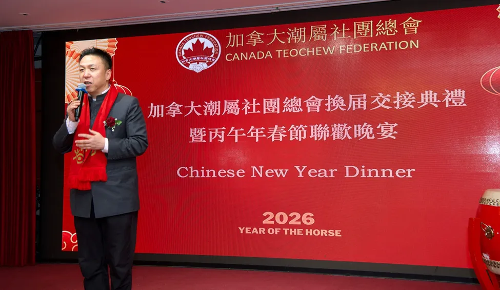 2026年2月26日晚,列治文幸運海鮮酒樓燈火輝煌,加拿大潮屬社團總會春節聯歡晚宴隆重舉行。第一屆理事會圓滿完成使命,第二屆理事會正式接棒,衆多嘉賓及鄉親歡聚一堂,共同見證這一重要時刻,並同賀丙午年春節。