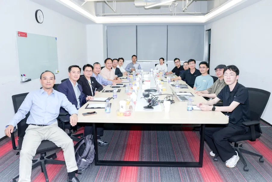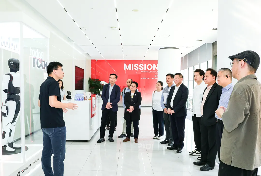 吳木興主席一行首先參觀了速騰聚創核心技術實驗室,近距離觀摩鐳射雷達、機器人感知系統等前沿科技產品的研發測試過程,對速騰聚創在感測器技術、AI感知演算法等領域的創新成果表示高度讚賞。考察團還進入辦公區域,深入了解速騰聚創從「機器人之眼」到「AI+機器人」技術平臺的發展歷程,以及在自動駕駛、機器人領域的商業化應用案例。隨後,雙方在會議室圍繞新加坡市場發展、鐳射雷達及機器人技術在當地的應用前景、市場需求等議題進行深入探討。