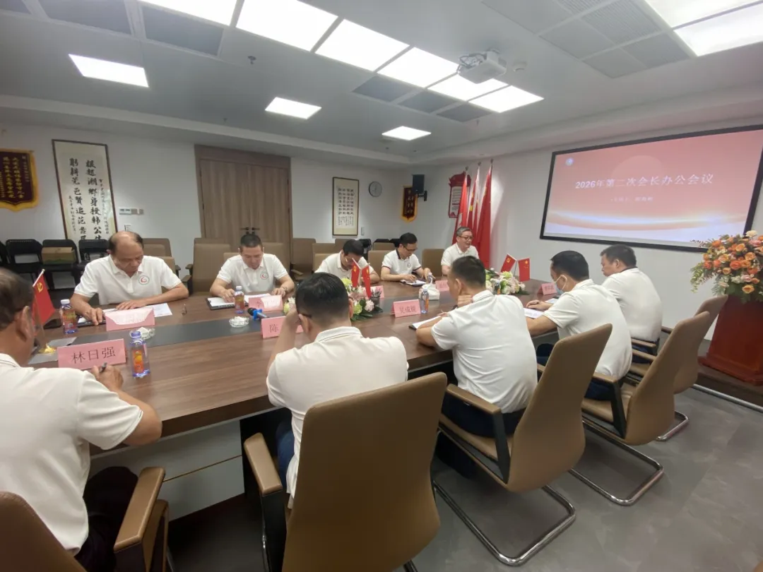 2026年第二次會長辦公會議在商會會議室順利舉行。本次會議由秘書長陳海彬主持,商會會長陳剛、黨支部書記陳欽、名譽會長兼廣濟慈善基金主席林日強、輪值會長李繼初、常務副會長兼國際貿易工作委員會主任吳成銳、常務副會長兼廣濟慈善基金副主席許煜華、常務副會長蔡增銓、副會長張創君、曹第鑫等商會核心管理層代表出席會議;監事長黃蔚然、副監事長陳惠強列席會議。