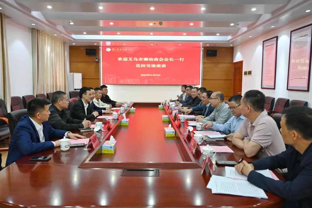 2026年4月3日,義烏市潮汕商會會長鍾楚龍一行蒞臨韓山師範學院交流訪問,先後開展合作座談與「義烏韓創菁英」企業微專業宣講活動。